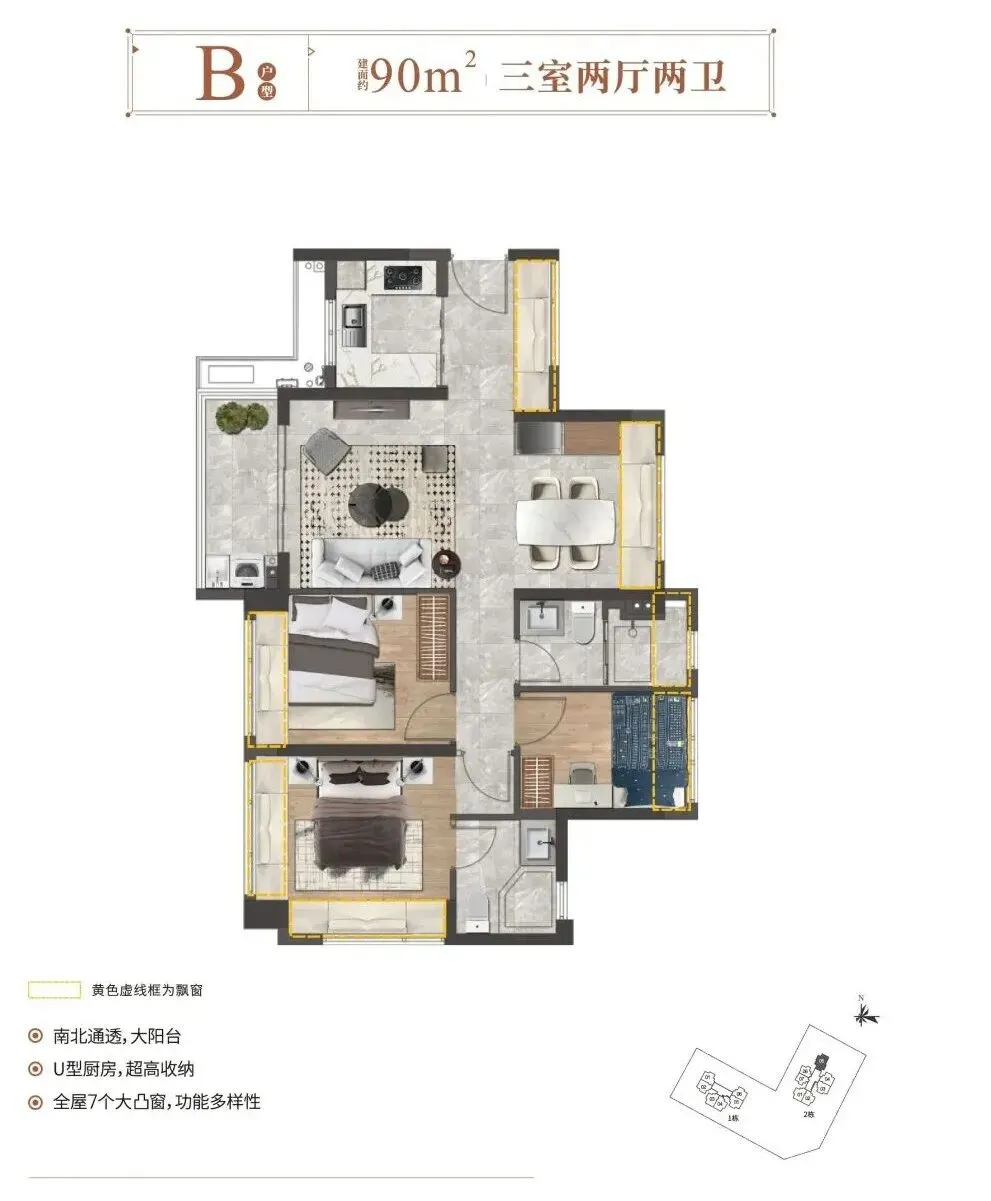 ——建面约90㎡3房2厅2卫