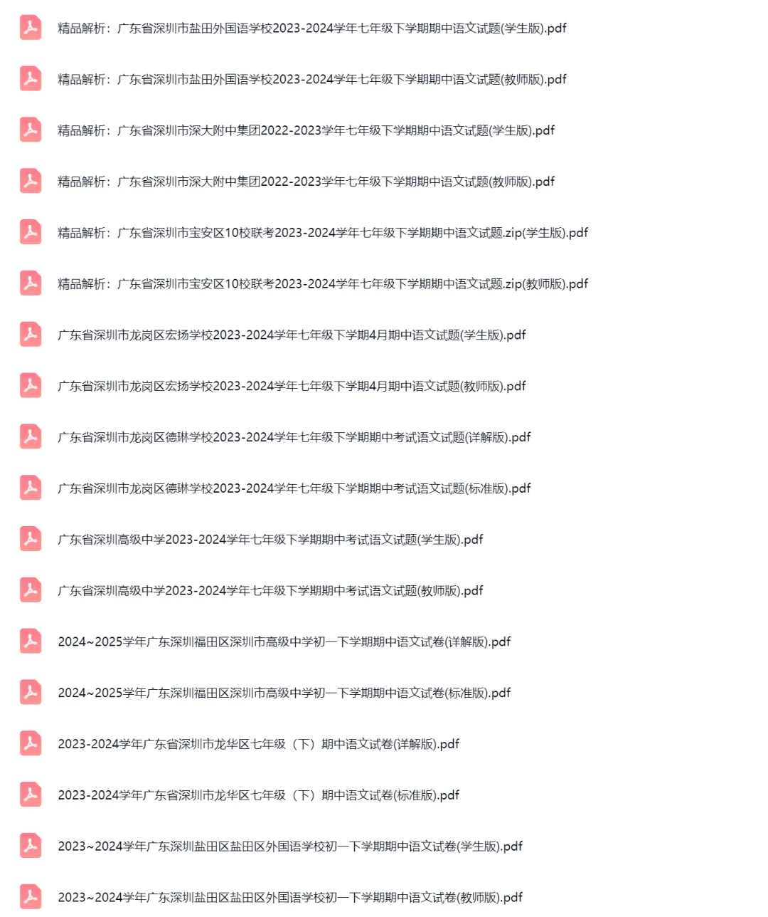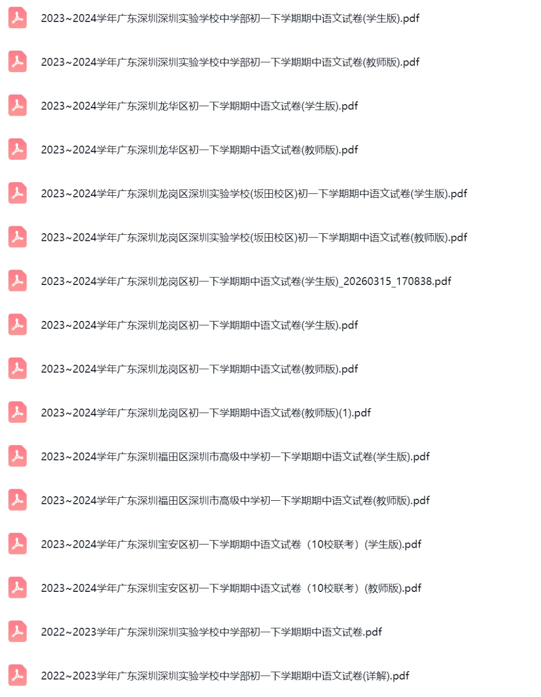 >110套2016-2025年广东深圳初一下学期期中语文试卷及答案解析