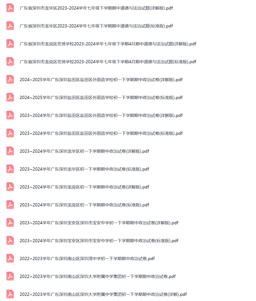 >31套2018-2025年广东深圳初一下学期期中政治试卷及答案解析