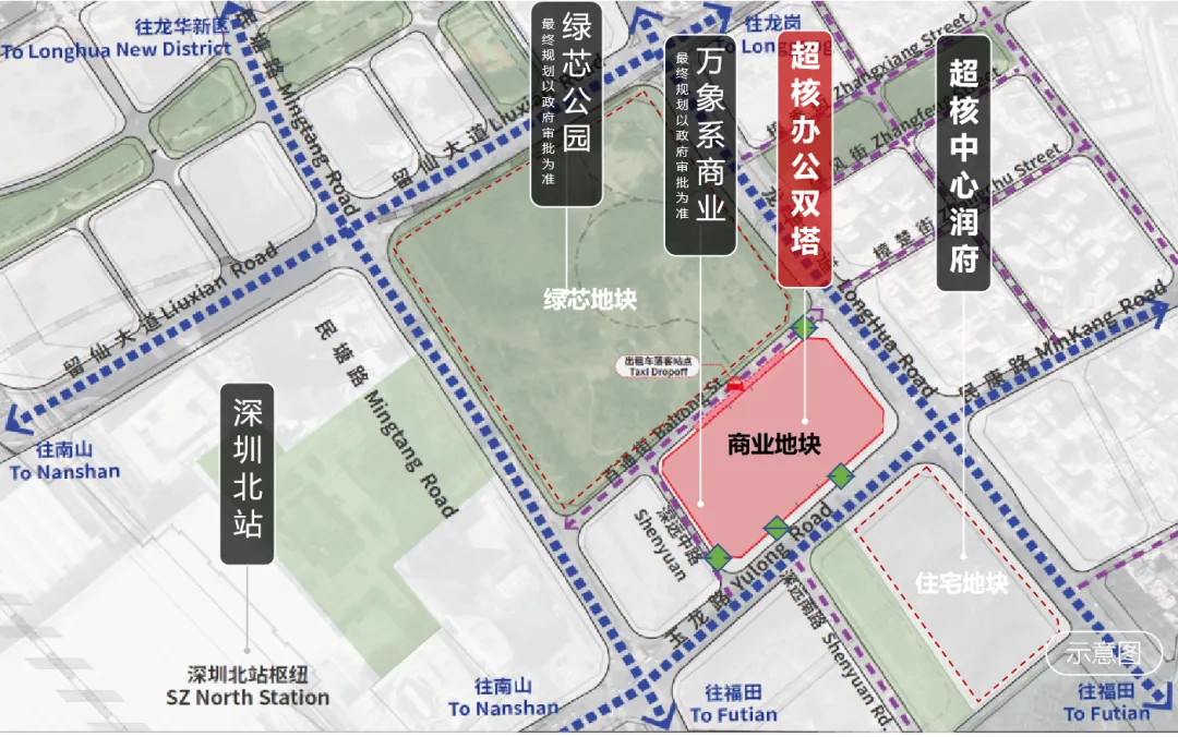 大厦地址:龙华区民治街道深圳北站片区,龙华大道与玉龙路交汇处