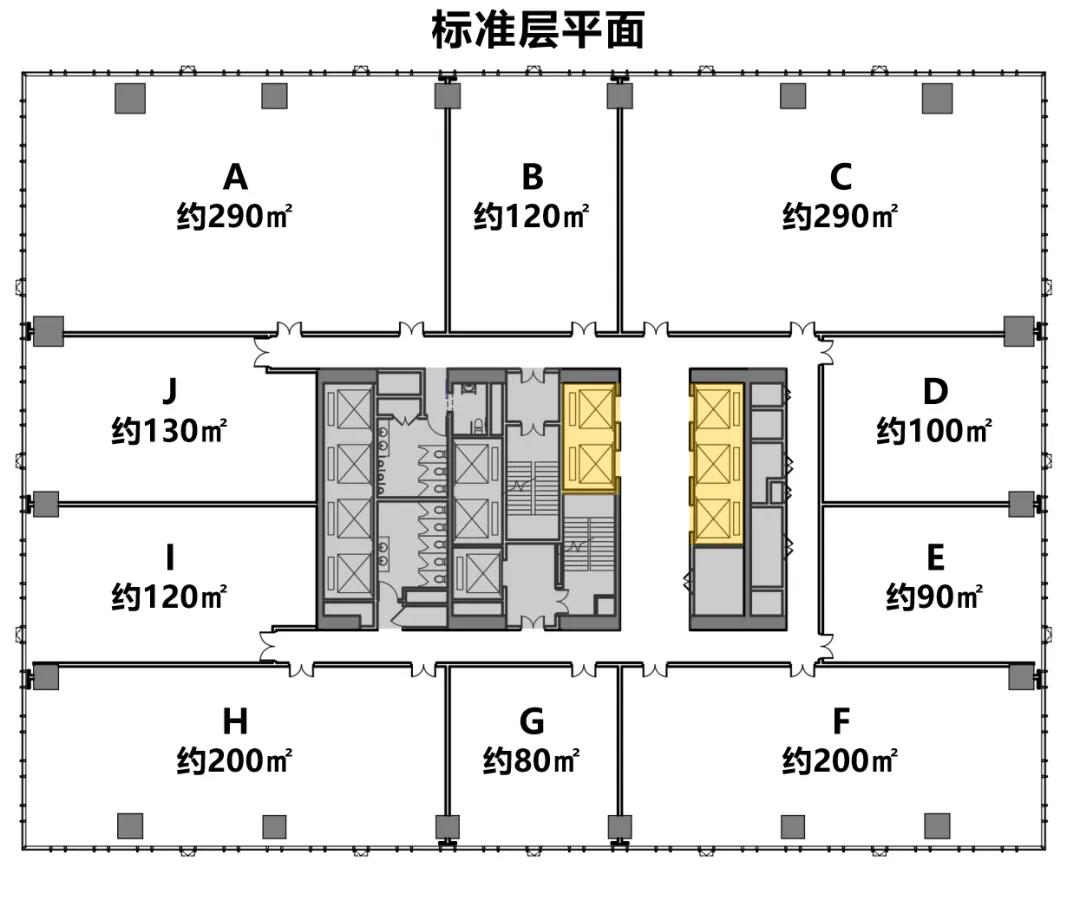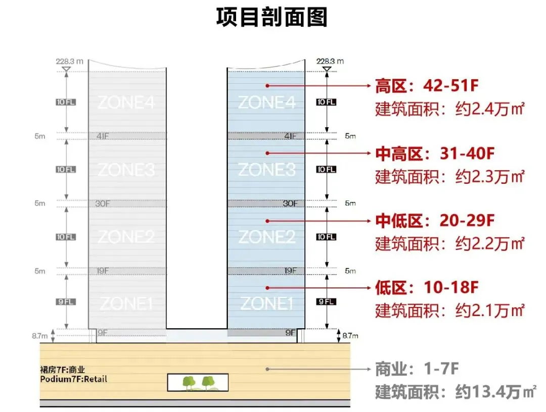 客梯数量:高区6部,中高区5部,中低区4部,低区3部