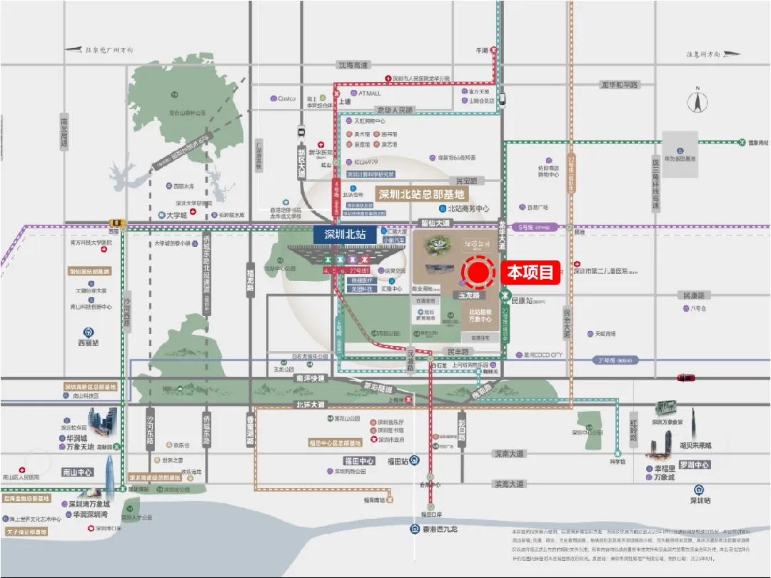 5地铁:地铁4/5/6号线交汇于深圳北站,未来规划22号地铁线、27号地铁线,可进一步快速通达深圳各区域