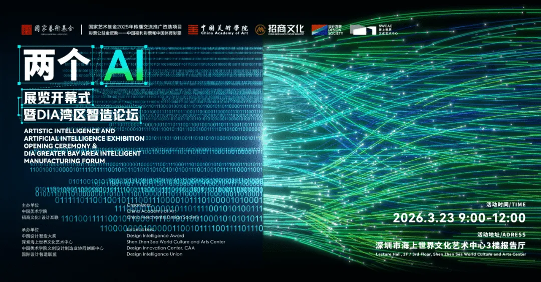 “两个AI:艺术智性与数字智能设计作品展”作为聚焦AI与数字创意融合的特别单元同期推出。展览聚焦人工智能时代艺术智性与数字智能的交汇,通过设计、科技与人文的跨界实践,回应技术加速发展的当下,探讨艺术如何介入现实、重塑日常,为以创新著称的深圳注入新的文化想象力。