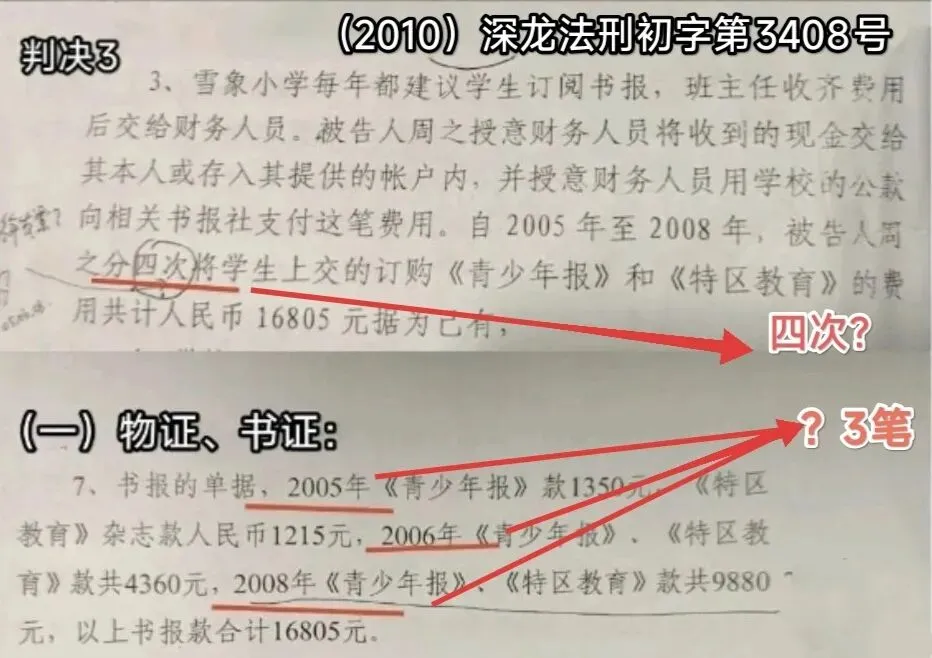 2. 证据数量矛盾:判决书认定被告人“分四次”占有书报费,但所依据的书证仅显示三次款项(2005年、2006年、2008年),存在根本性矛盾。