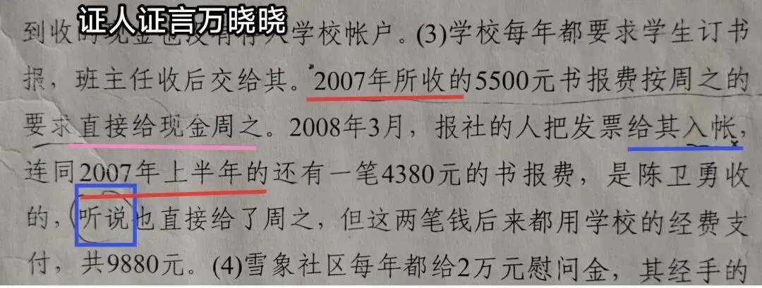④证言与行为矛盾:其经手2008年书报费后,2009年不再担任报账员,所谓“后来”的证言与实际情况不符。