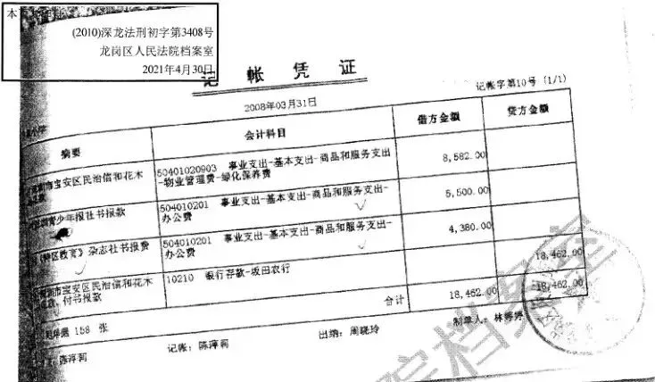④财务管理中心“记帐凭证”(入账)载明:深圳青少年报社书报费5500元,《特区教育》杂志社书报费4380元。
