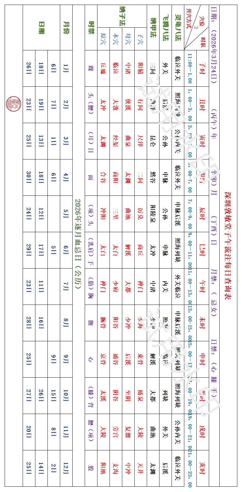 >深圳敦敏堂《子午流注:今日开穴》 2026 3月24日