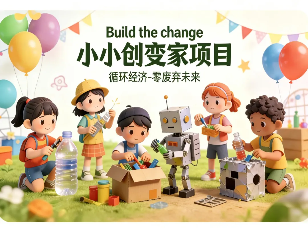 良安田社区党群服务中心将开展“循环经济·零废弃未来”主题课程,依托“Build the Change小小创变家”项目,秉持“玩乐中学习”的理念,通过趣味教学和丰富的互动活动,让孩子们在探索可持续发展议题的同时,利用废弃物品动手创作艺术品,在实践中深刻理解“垃圾只是放错位置的宝藏”,培养环保意识与多维创新能力。