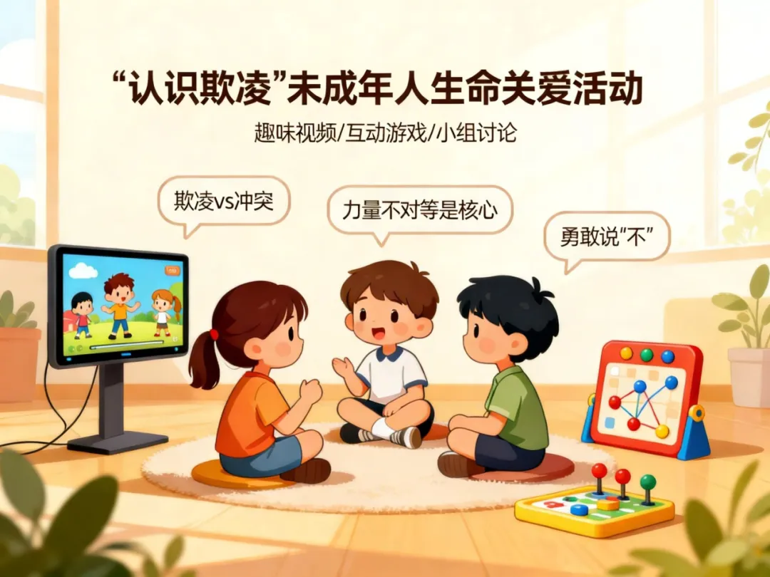 横岗社区党群服务中心将开展“认识欺凌”未成年人生命关爱活动,通过趣味视频、互动游戏、小组讨论等形式,引导孩子理清“欺凌”与“冲突”的本质区别,拆解欺凌的各种表现形式,帮助孩子理解“力量不对等”是欺凌的核心特征,并传授实用应对策略,助力孩子打破沉默、勇敢求助,学会对校园欺凌说“不”。