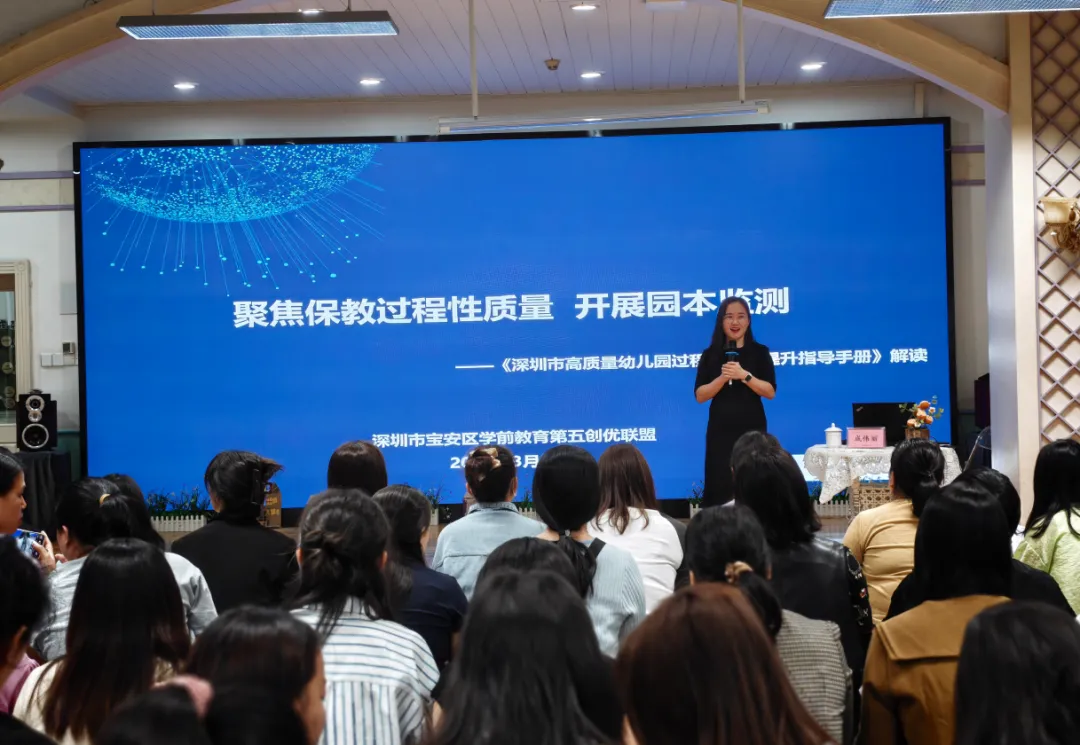为扎实落实《幼儿园保育教育质量评估指南》要求,推动学前教育治理从“经验主导”向“实证赋能”转型,深耕幼儿园保教质量提升工作,精准把握师幼互动对幼儿发展的核心价值,3月21日,深圳市宝安区学前教育第五创优联盟特邀罗湖区教育质量监测中心教研员成伟丽老师,为联盟全体班主任及以上教师开展《对接过程性质量 赋能高质量发展》专题培训。