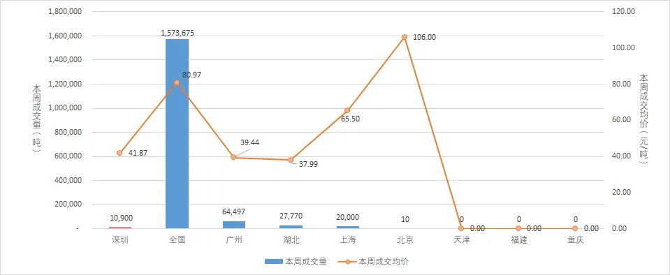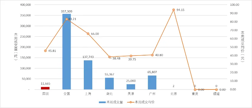 本周广东碳市场碳排放配额总成交量65,807吨,总成交额268.88万元。本周最后一个交易日收盘价为41.77元/吨,较上周最后一个交易日下跌4.81%,本周碳排放配额成交量较上周上涨366.39%。