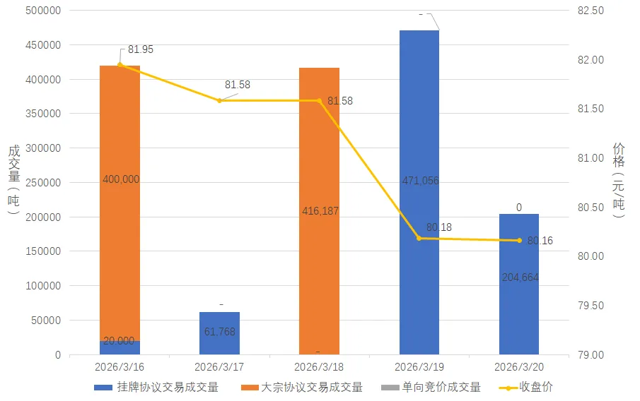 本周北京碳市场碳排放配额挂牌成交量2吨,成交额188.30元。本周最后一个交易日收盘价为94.15元/吨,较上周最后一个交易日上涨2.00%,本周碳排放配额成交量较上周下跌99.94%。