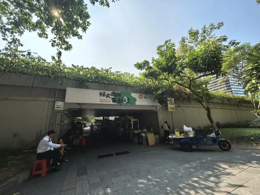 从小汤山观景台转入大沙河生态长廊,绿荫遮蔽,凉爽舒适。行至金蝶大厦附近,按岔路上行转入市政道路,穿立交桥进入科技园高新区。白石路部分路段暂无专用骑行道,但非工作时段人车少,骑行依旧舒适;学府路下穿滨海南海立交桥洞,市井烟火气十足。