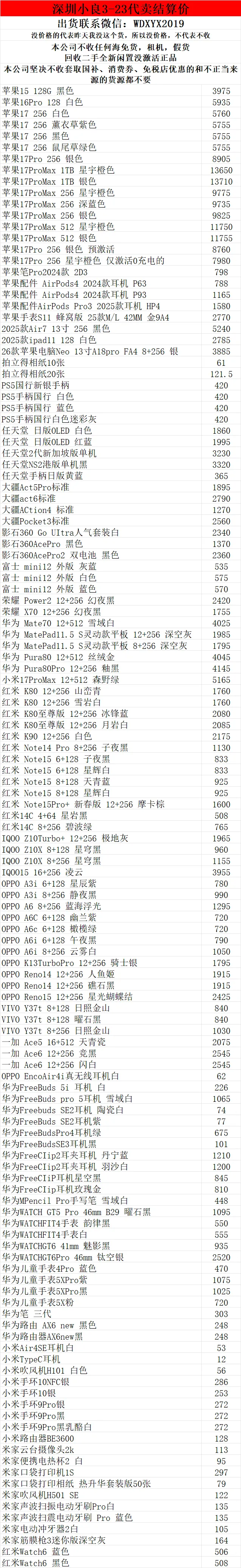 >深圳小良2026.3.23电子产品代卖结算价(美妆价格小程序查看)