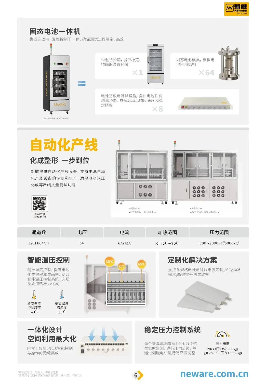 新威(NEWARE)创始于1998年,凭借27年的技术坚持,荣获国家高新技术企业认证,致力于为全球电池生产、新能源汽车生产、储能电池生产配套等企业、国家质检部门、院校及科研机构提供高性能电池检测系统、化成分容分选系统、环境试验箱及自动化设备等产品,及LIMS、ERP、MES、新威智能AI、新威研选BI等系统服务。