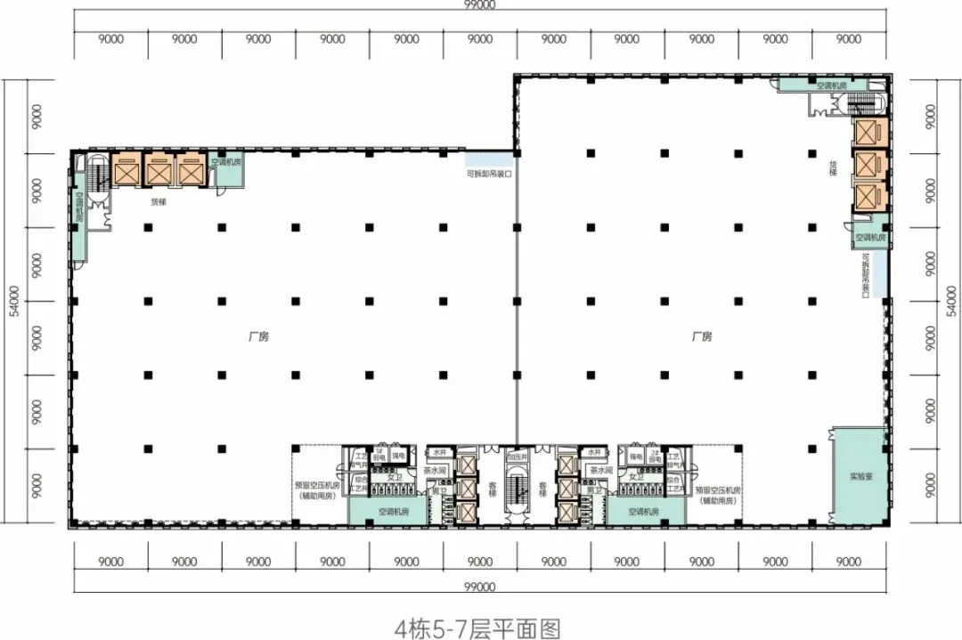 宽柱距 | 约9*10m间距,方正空间,高使用率;