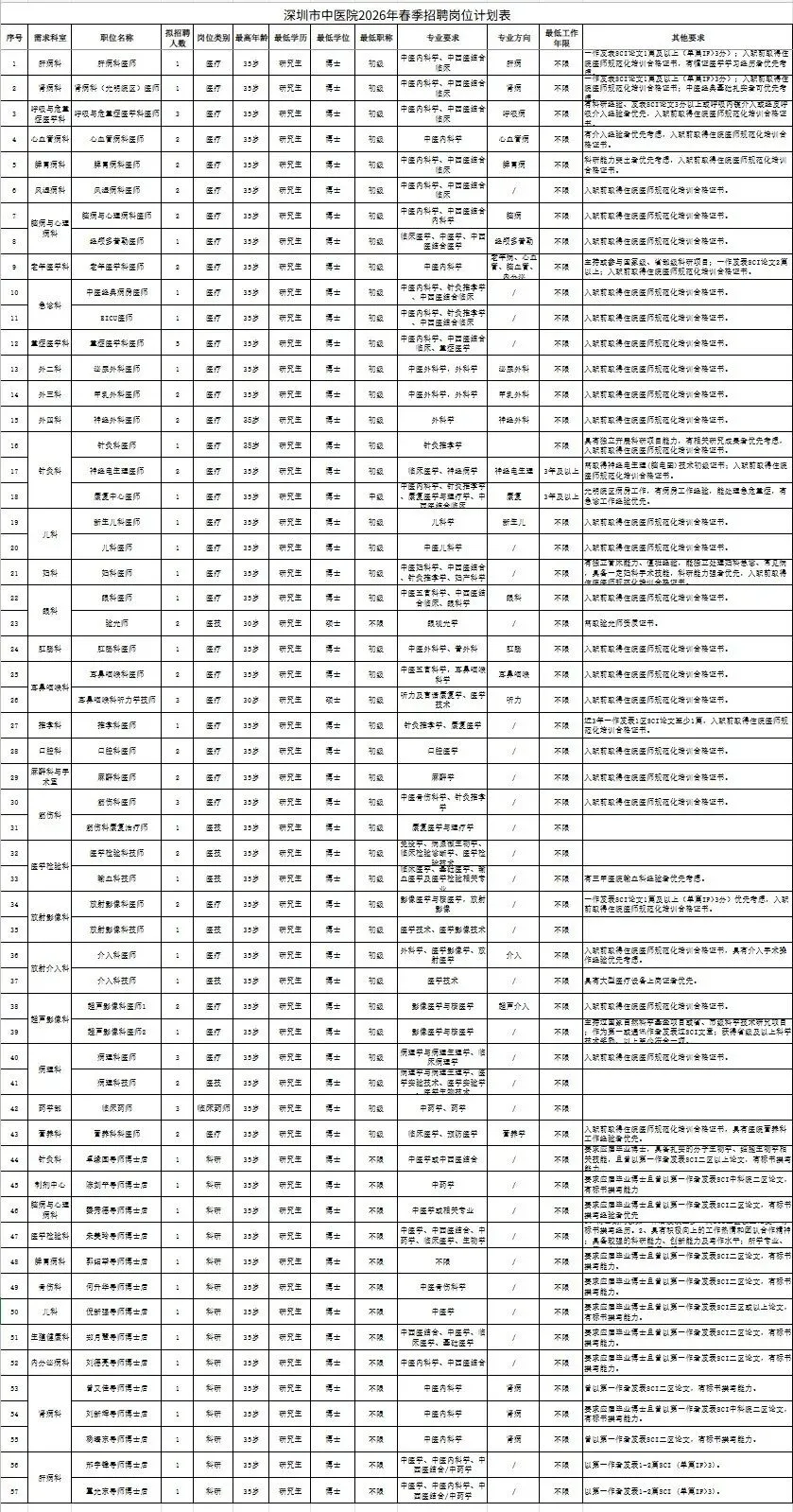 附件:深圳市中医院2026年春季招聘岗位计划表(点击可获取岗位表)