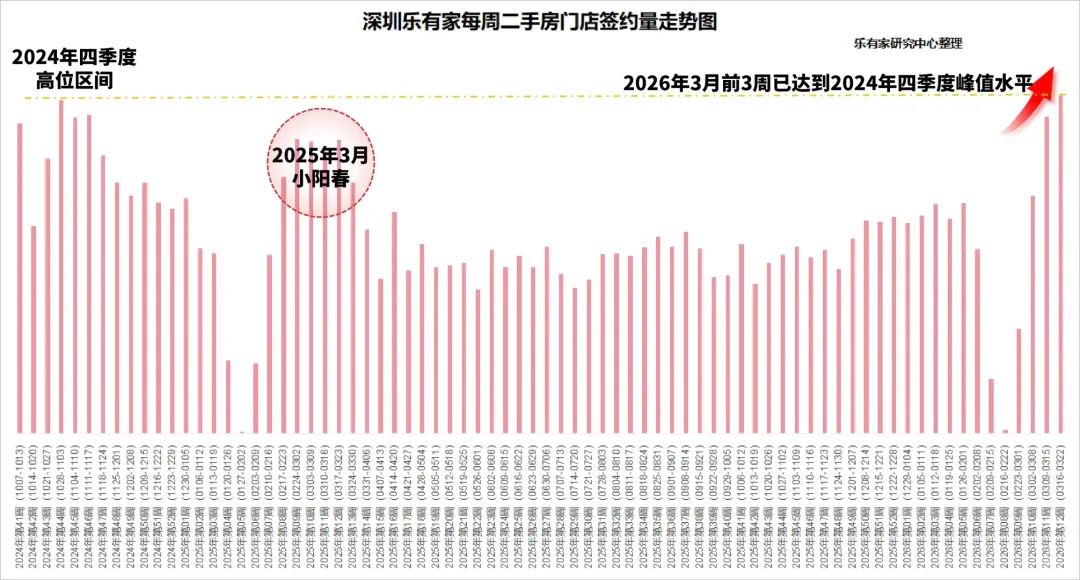 进入2026年3月,深圳在没有更新政策刺激的情况下,前3周二手门店签约量,达到了2024年四季度的峰值。
