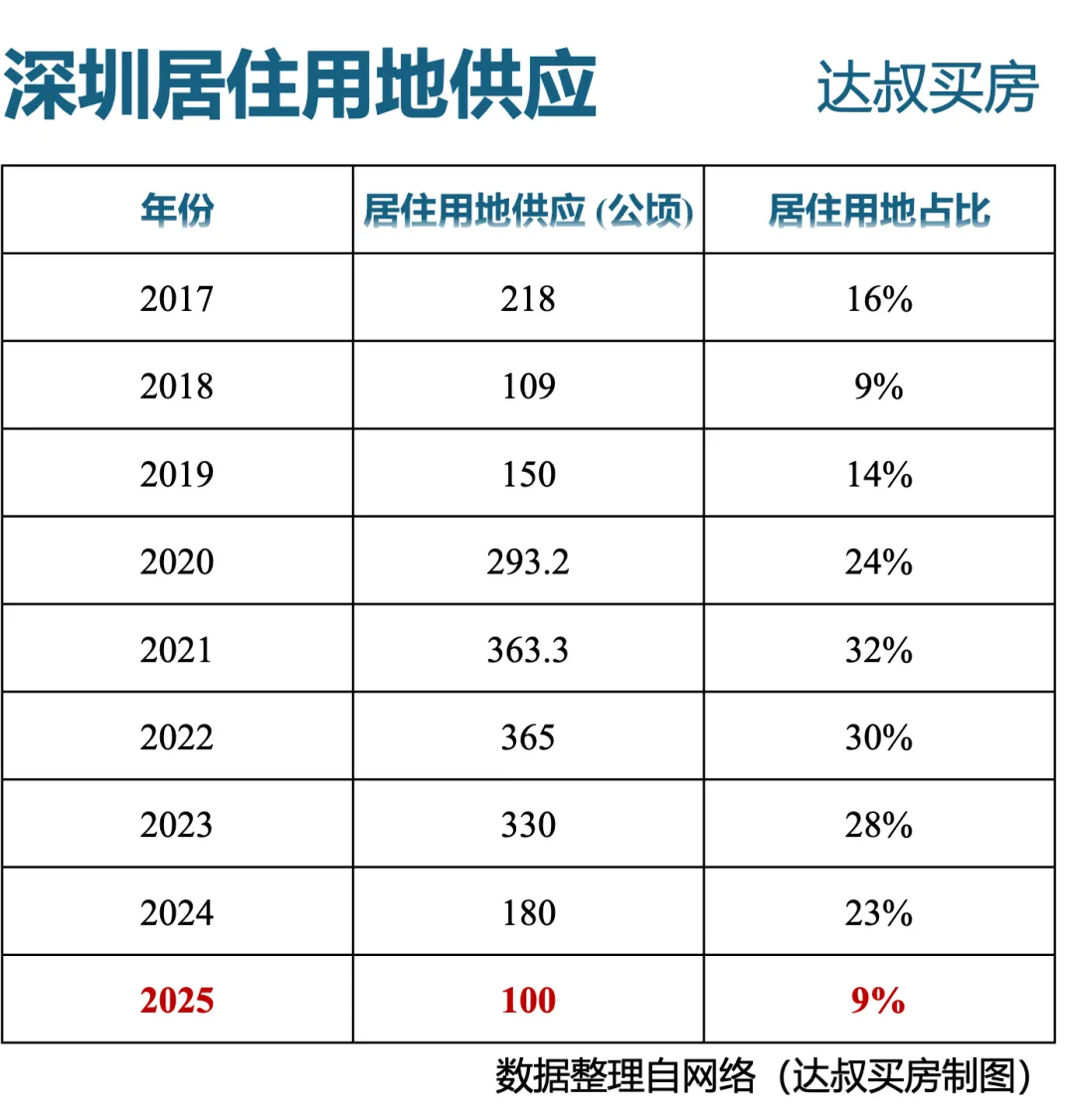 深圳这几年,在大幅度缩减住宅用地供应量。