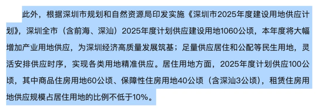 而根据2025年的计划,住宅用地供应只有100公顷。