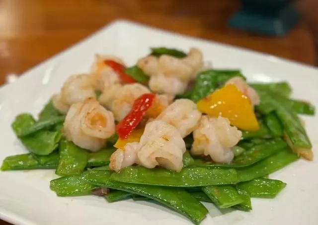 荷兰豆炒虾仁端上来,虾仁剔透,荷兰豆清脆,每一口都是脆生生的声音。但老实说,这种清淡,在湖南人眼里像水煮娃娃菜,舒服是舒服,就是总觉得少了点什么。