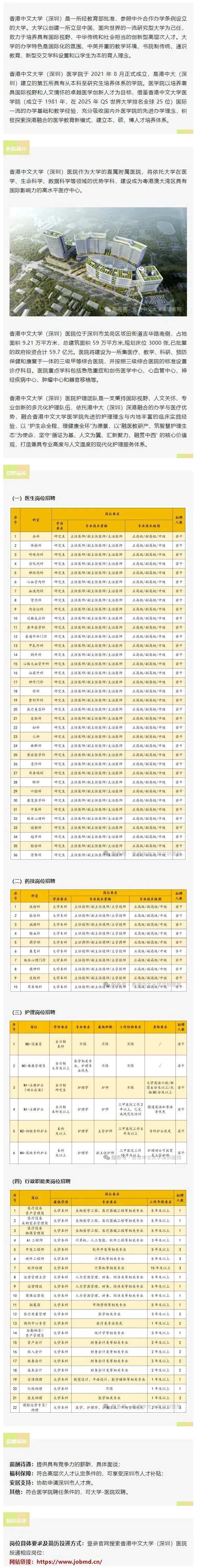 【深圳】招38+人,新医院,含大批护理!香港中文大学(深圳)医院招聘公告(招满即止)