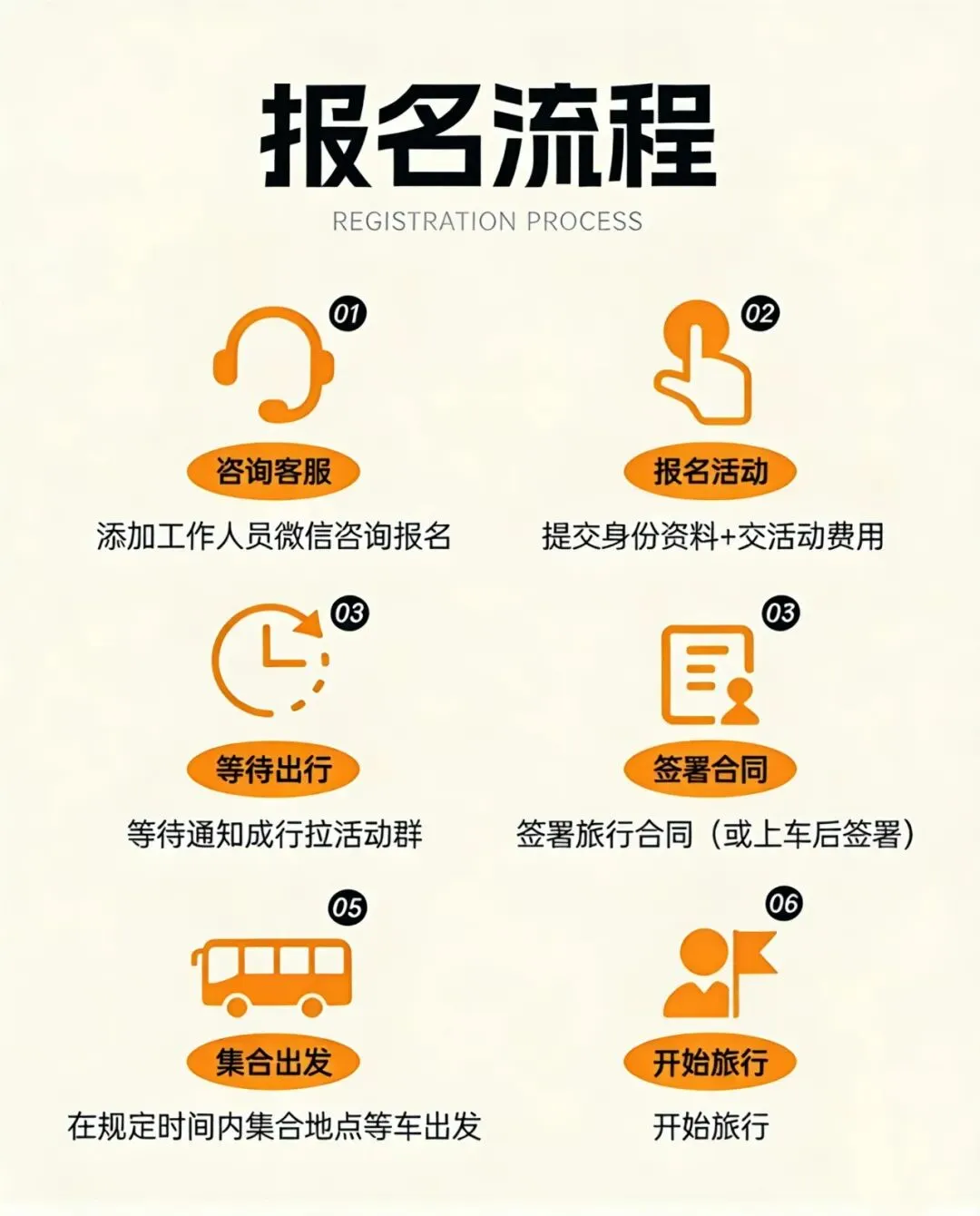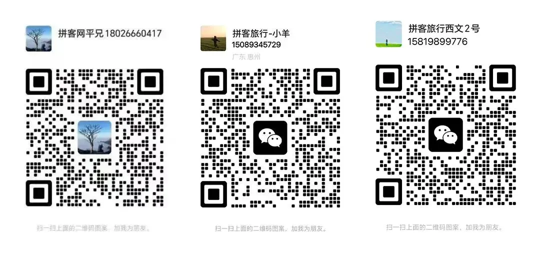 注:若您的出行日期和以上时间不一致,如果你5人以上想走这条路线可以提前一个星期告诉我们,我们根据你的时间来拼!