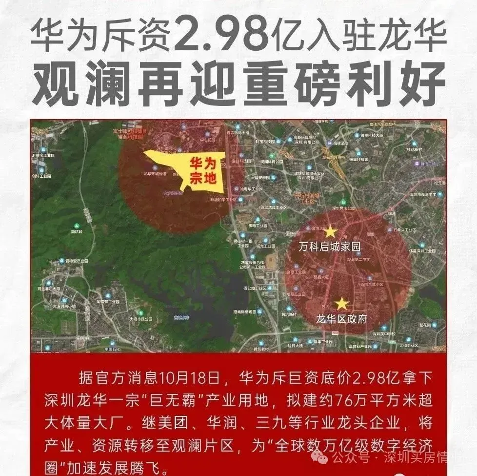 华为进驻利好,76万㎡“超级大厂”助力观澜腾飞。三城两镇一商圈中,观澜占据其三,“鹭湖科技文化城、九龙山智能科技城、观澜文化艺术小镇”三大片区重点发展人工智能、5G、创意文化、生物医药,引领龙华价值跃迁。
