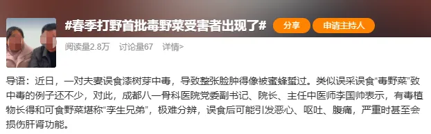 春季也是野菜中毒发病人数最多的时间