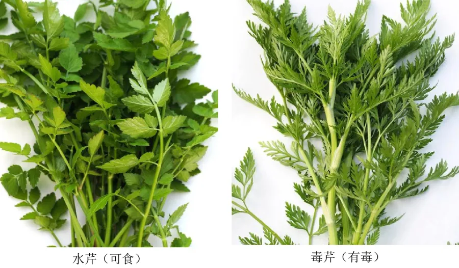 👉毒芹(石龙芮):外形酷似水芹,全株有毒,误食后会引发恶心、呕吐、呼吸困难等中毒症状。