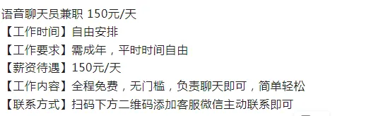 工资日结:底薪140元,成功添加有效微信五元一个,(优胜劣汰制)