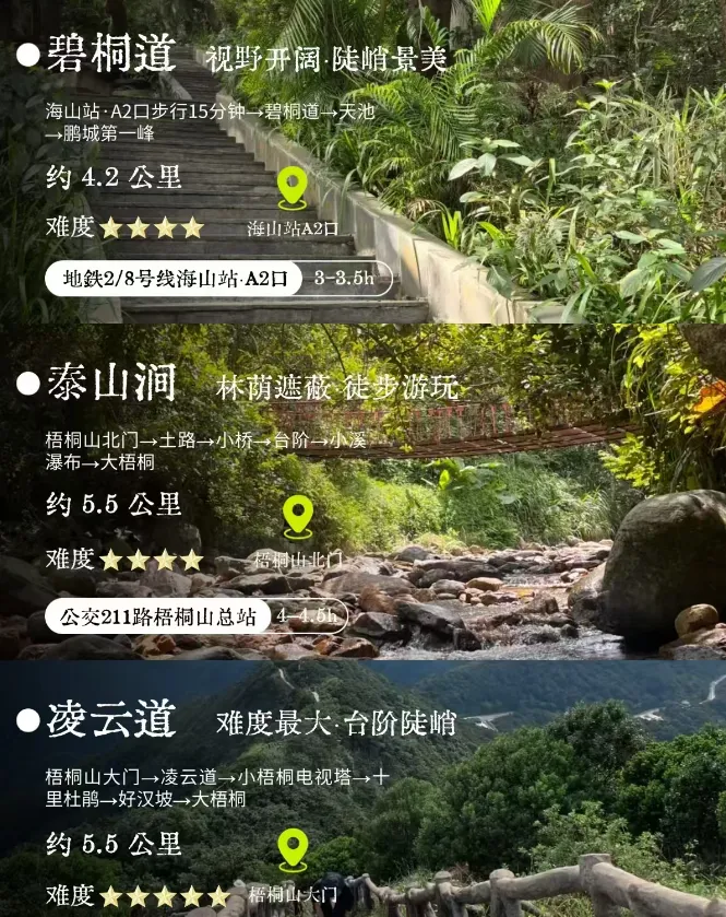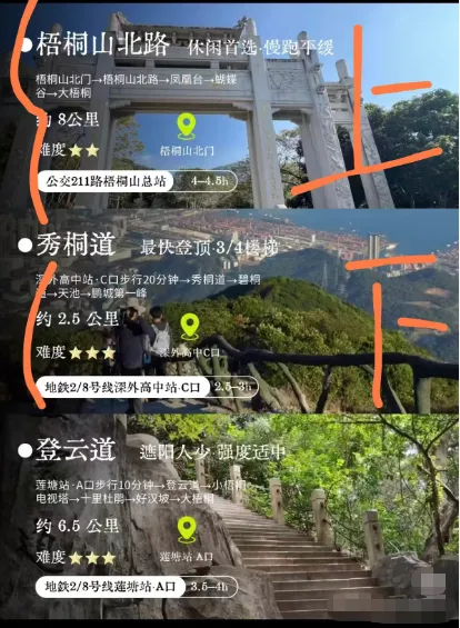 上山:约四五个小时(梧桐山北路):平缓路,好走。