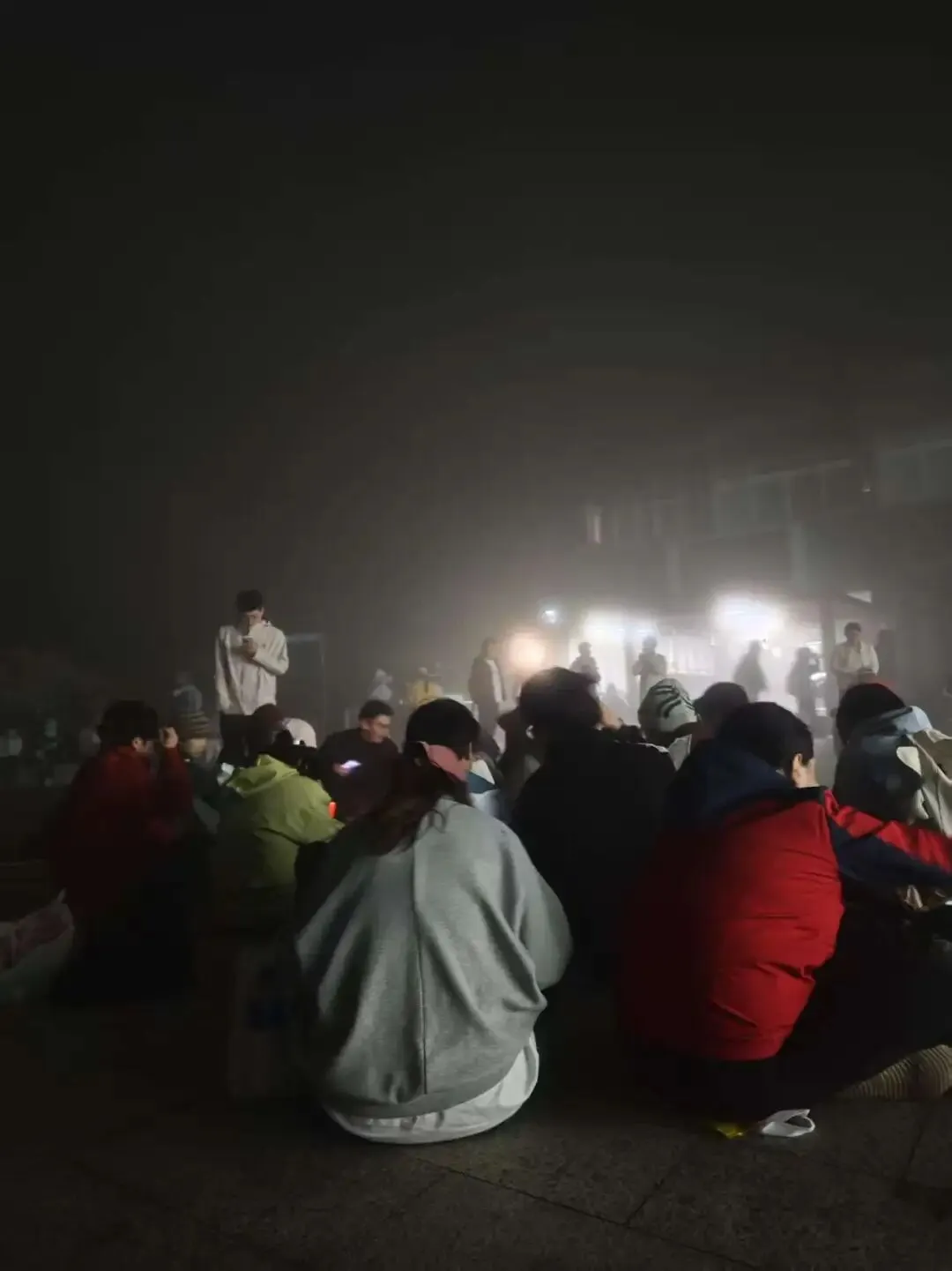 (半夜很冷,大家围坐在一起唱歌的,打牌的,玩游戏的)