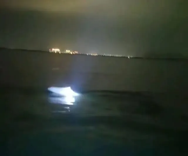 今年以来,深汕海域频迎海豚造访。图为1月14日晚渔民拍摄的海豚画面。 通讯员 受访者 供图