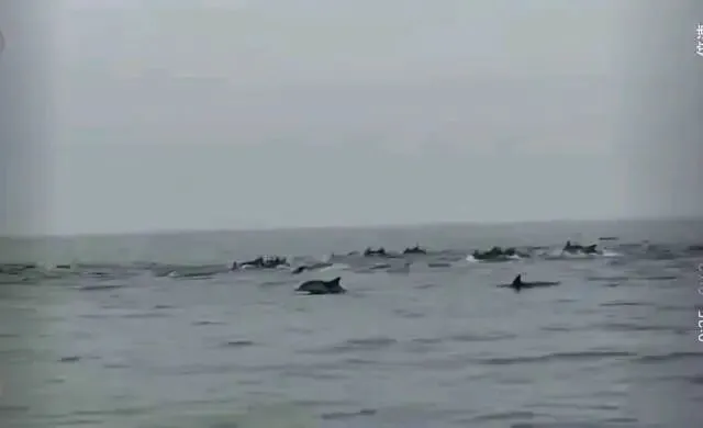 今年以来,深汕海域频迎海豚造访。图为渔民此前在百安半岛拍摄的海豚画面。 通讯员 受访者 供图