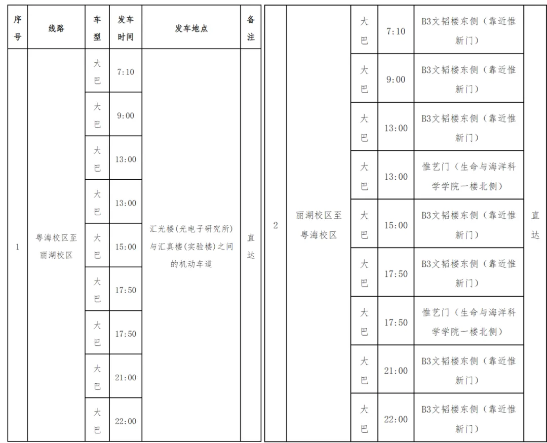 只是在运营时刻、停靠站点、班次编排上,优先服务两校区师生通勤需求,实现粤海 ↔ 丽湖快速直达、少站停靠,让跨校区上课、办事、通勤的效率大幅提升。
