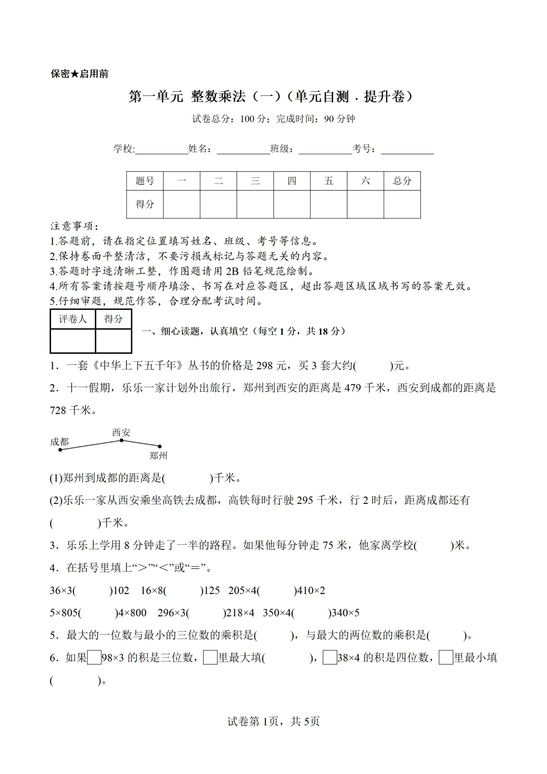 三年级数学(北师大版)下册第一、二单元自测卷