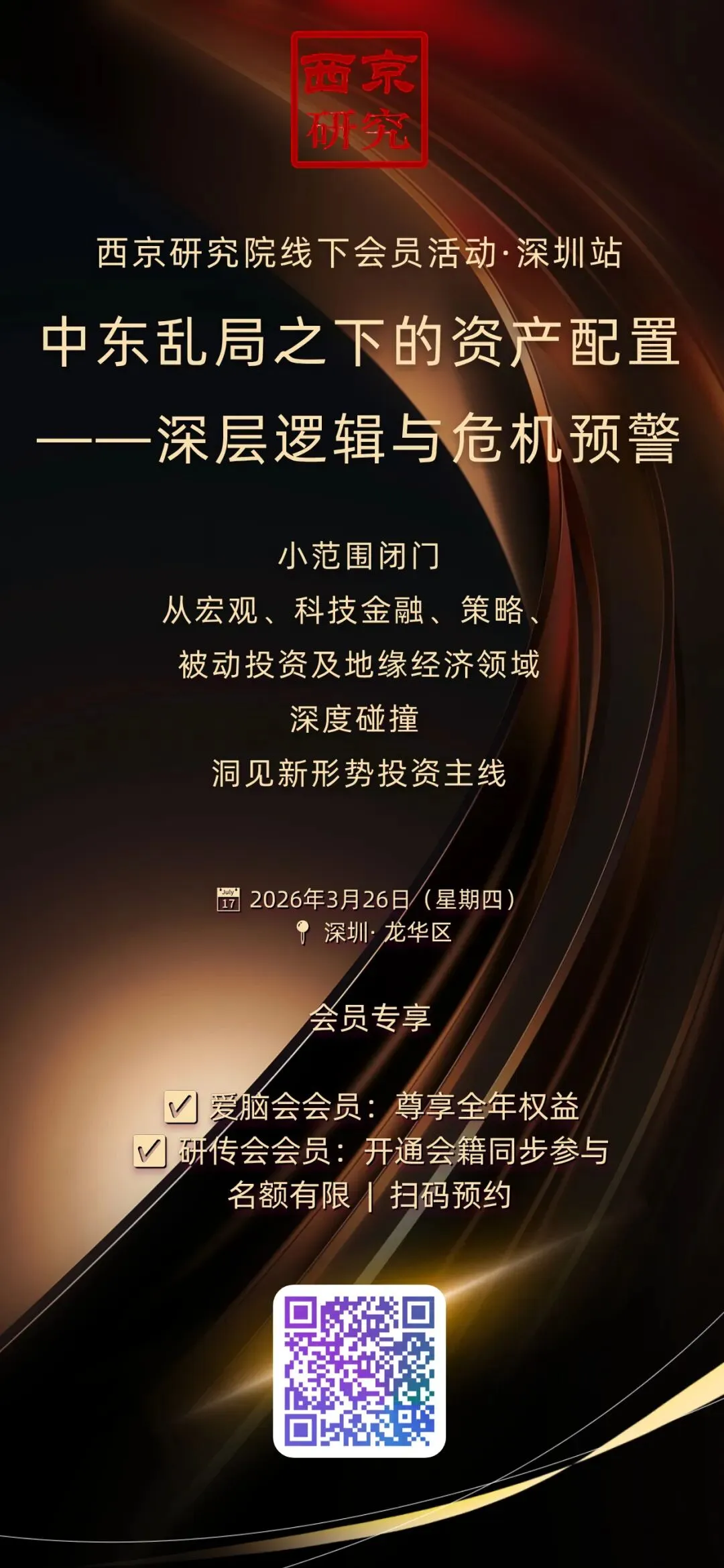🔥 重磅加码:前海开源基金首席经济学家 杨德龙 正式加入!原定5位嘉宾阵容再升级!3月26日深圳闭门会,赵建、杨德龙、薛清和、周宁、国瀚中、李兴振——六位宏观与投资领域实战派专家首次同台,围绕“中东乱局下的资产配置”展开深度碰撞。🎙️ 新增嘉宾介绍杨德龙(前海开源基金执行总经理、首席经济学家)感谢大家的热情支持!自开放报名以来,深圳闭门交流会热度远超预期,目前确认参会人数已接近上限,仅剩最后几位稀缺名额。📌 会议主题:中东乱局之下的资产配置——深层逻辑与危机预警👥 嘉宾阵容:· 赵建(西京研究院院长):叙事之变与金融危机——从美伊战争的四重密码说起· 杨德龙(前海开源基金首席经济学家):宏观策略落地+中东变量影响· 薛清和(智本社社长):AI新叙事和战争旧逻辑——美国私募信贷风险· 周宁(上海觅确投资总经理):2026年投资策略前瞻· 国瀚中(金岭基金创始合伙人):指数化投资与财富管理新质生产力· 李兴振(成都元臻资产总经理):中东乱局下的香港机会⏰ 时间:3月26日(周四)13:30-17:30📍 地点:深圳·山东财大深圳研究院💰 费用:参会费:1080元/人晚宴名额已满,报名时请勿再勾选晚宴。📩 报名方式:点击下方小程序卡片,填写报名信息并完成付款即可锁定席位。名额以付款顺序为准,先到先得。报名表最后几位席位,满员即止。这不仅是观点的碰撞,更是圈层的相遇。期待与您线下相见。