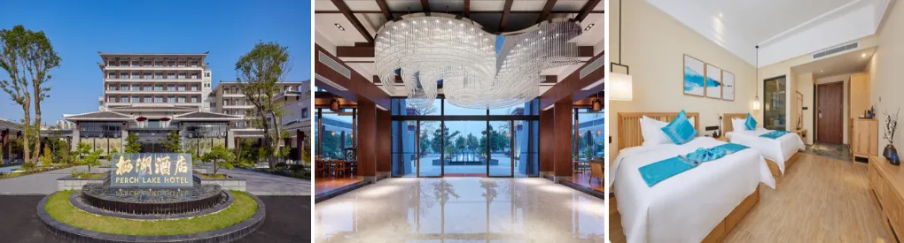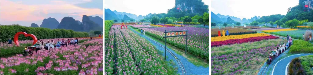赏花季:4月有黄花风铃,美国石竹,4月底5月醉蝶花,向日葵,硫磺菊……(以下照片仅做参考,由于花的盛开情况受天气等各因素影响,若花卉未盛开或凋谢,不另做解释或补偿 !!!)打卡网红【蒸汽小火车】(此项目可自由自费单程20元/人大小同价)穿越花田、桃林、湖面的水上观光小火车,长约3公里,可同时乘坐20人,行驶约半小时,是世界上在运营的最慢小火车,坐在哐当哐当行驶的小火车上,悠然尽赏峰林水乡醉美风光,人在画中游,赶紧拍一个让你点赞无数的抖音小视频或者来一组刷爆朋友圈的大片吧!16:00前往入住酒店。【栖湖大酒店】酒店位于岭南古邑英德市,座落于美丽的浈阳湖畔。酒店撷取徽派精致园林建筑风格,揽看湖光山色,坐观琼楼玉宇,沐风岭南古韵,一段红茶品茗心旅,一程英石寻访情路。酒店拥有168间套国风古韵的智慧贵宾房,集成高端智慧客控科技和茶色文艺软饰,配套有粤式自助餐厅,融汇南北菜式的中餐贵宾厅,沁人心扉的静心雅墅,私密隔世的庭院泳池,林深见鹿的露天咖啡厅。栖湖酒店是一幅灵动与纸上的古邑国画,一座跃然于湖光中的心灵驿站,栖湖做客,古邑浓情...住宿:英德栖湖酒店