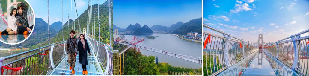 第二天:早餐--宝晶宫(含溶洞+玻璃桥+游船/小火车2选1)--午餐--黄腾峡山水丽人表演+天门玄廊(必消118元/人)--晚餐必消包含--入住酒店