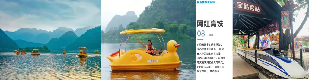 天宫玻璃桥——广东最长观湖玻璃桥,天宫玻璃桥横跨狮子山与天山,桥面宽度达3米,是省内最长的观湖玻璃桥,桥面全长218米,海拔88米,超高透光度玻璃,透光率高达99%,5D效果,全湖景视高空悬空觉享受。天鹅湖游船(30分钟)或小火车二选一,天鹅湖游船码头上,停靠着数十条游船。让您乐享惬意的水上生活,在1680亩水宽云阔的天鹅湖上游船,心随游船动,陶醉天鹅湖。