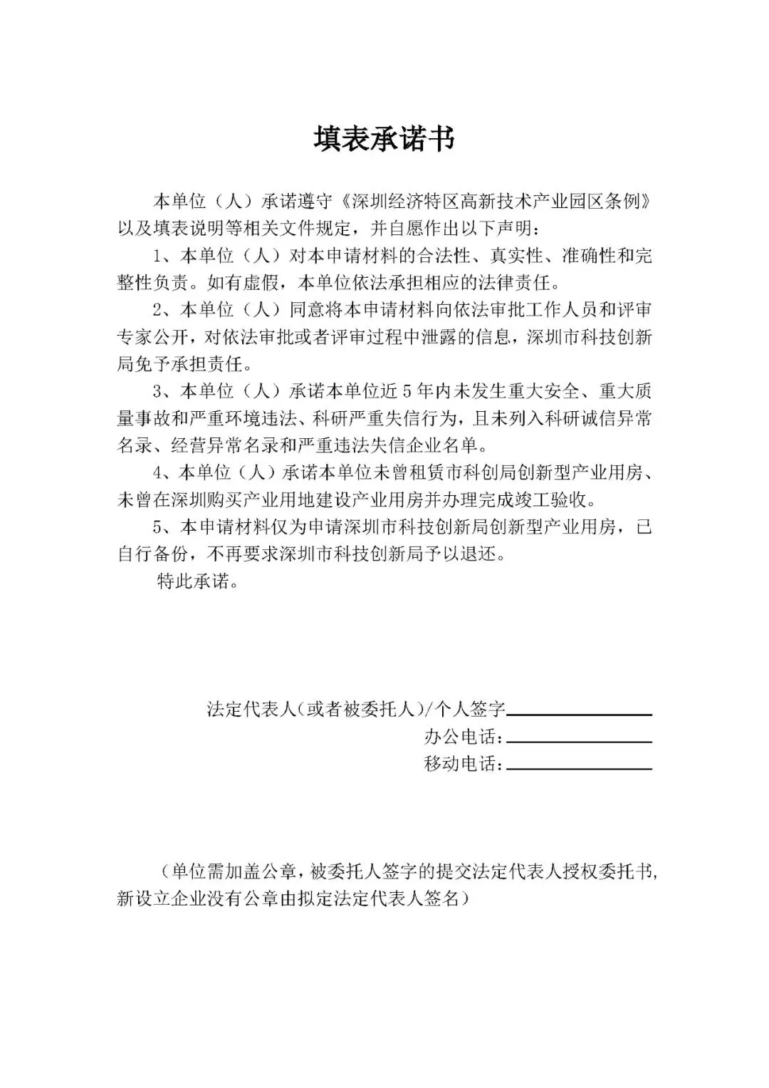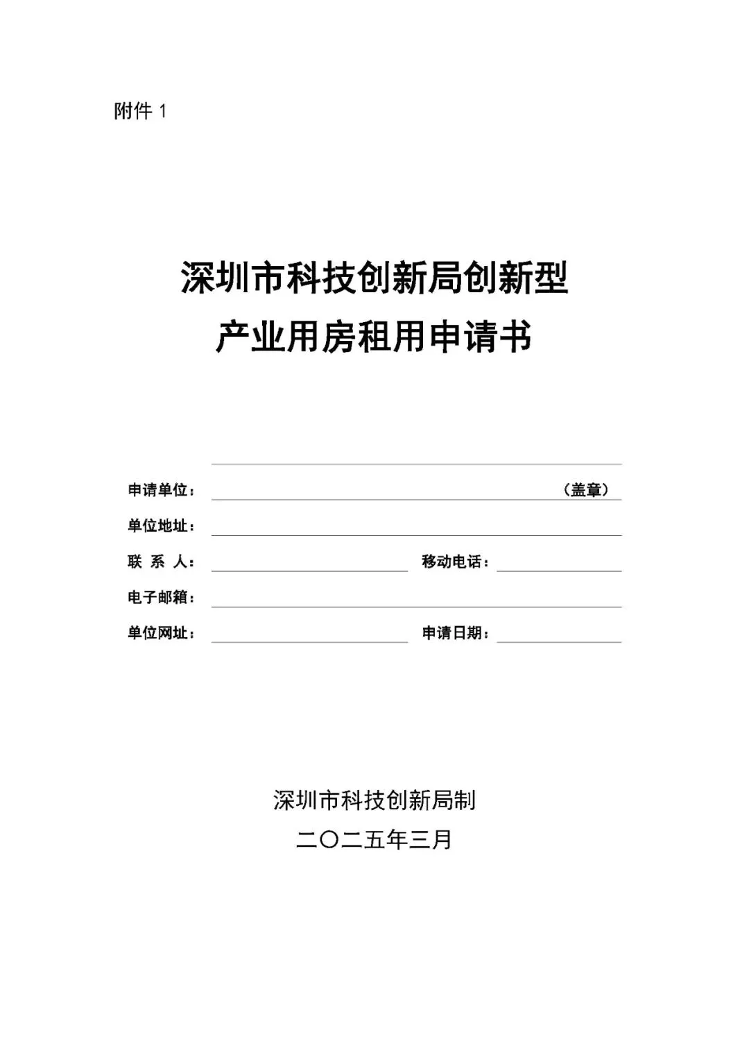 附件:深圳市科技创新局创新型产业用房租用申请书