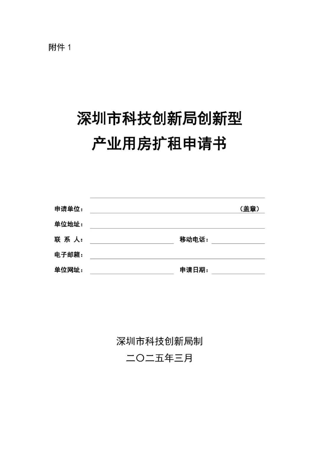1.深圳市科技创新局创新型产业用房扩租申请书。