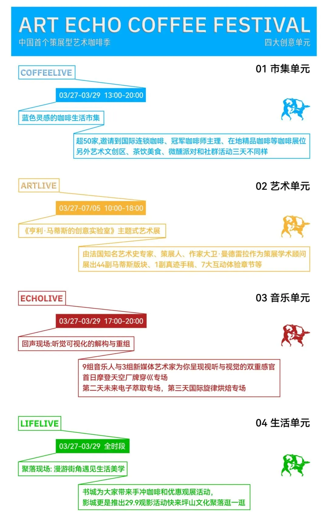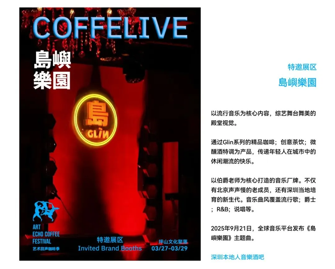 阳春三月,深圳坪山文化聚落迎来首届「艺术回声咖啡季」。以咖啡、艺术、音乐、生活四大单元,融合马蒂斯艺术、先锋音乐与精品咖啡,邀你在3月27日-29日,来坪山漫游一场沉浸式城市文旅新体验。