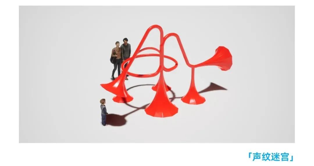 这是一个让广场学会聆听的游戏一-它邀请每个人俯身,把话语交付给彩色的管道,等待一次未知的、友好的回声,在简单的传声之间,重拾城市中失落的好奇与连结。