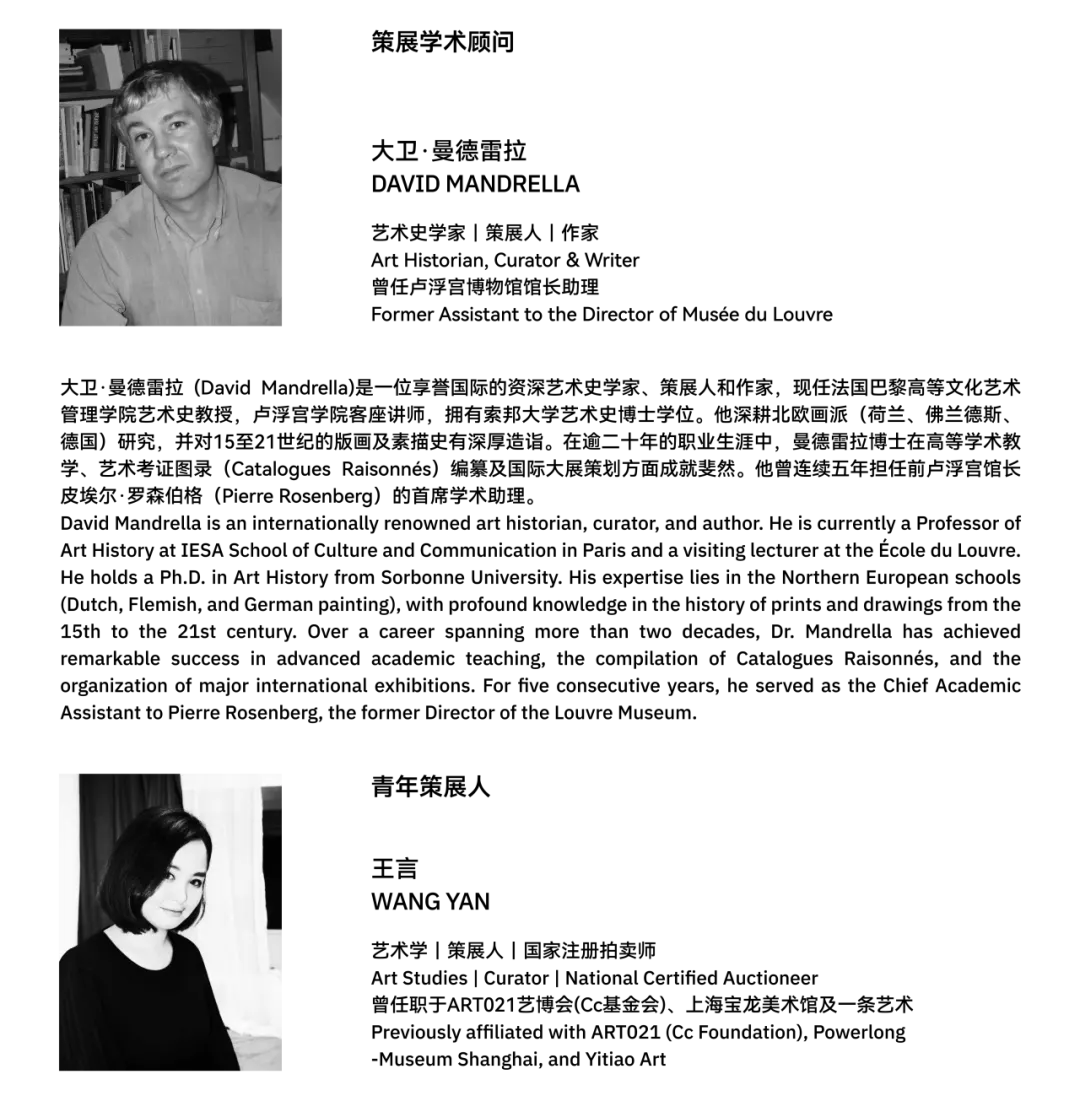 法国大卫·曼德雷拉担任学术指导,携手青年策展人共同呈现,以权威学术视野为基底,注入年轻策展力量,重塑对大师艺术的深度解读。