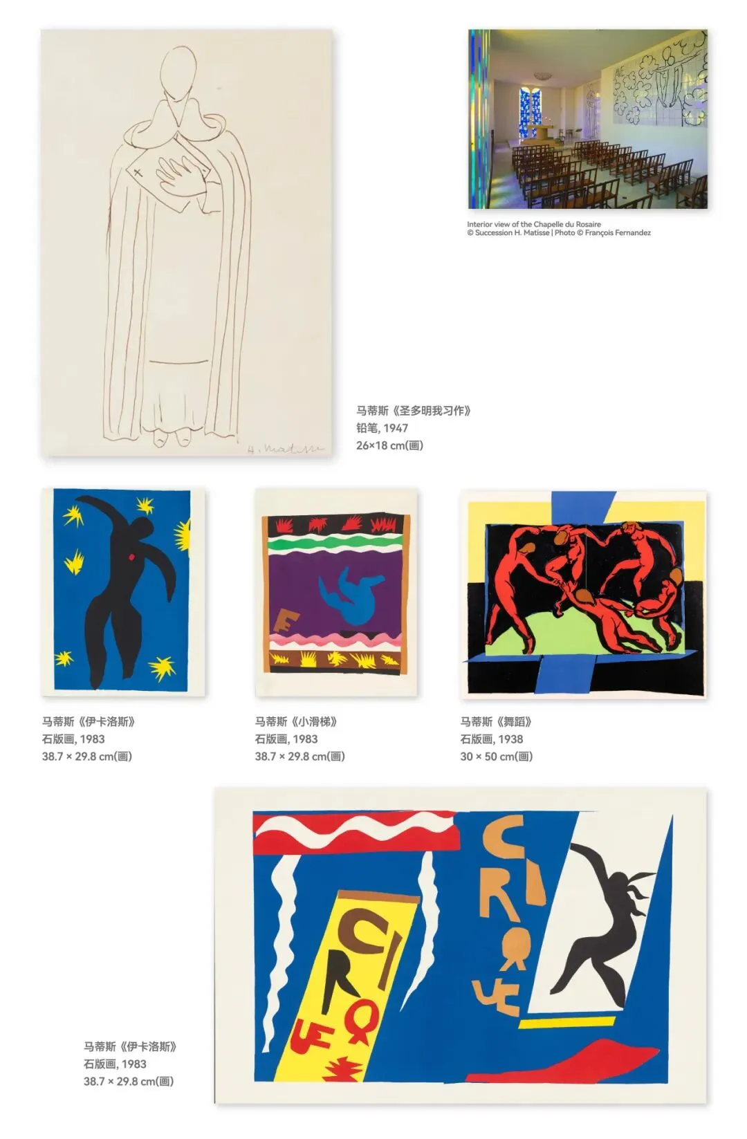 玫瑰经教堂素描线稿深圳首次呈现,马蒂斯晚年为旺斯礼拜堂创作的珍贵手稿首度来深,见证其艺术信仰的终极升华。