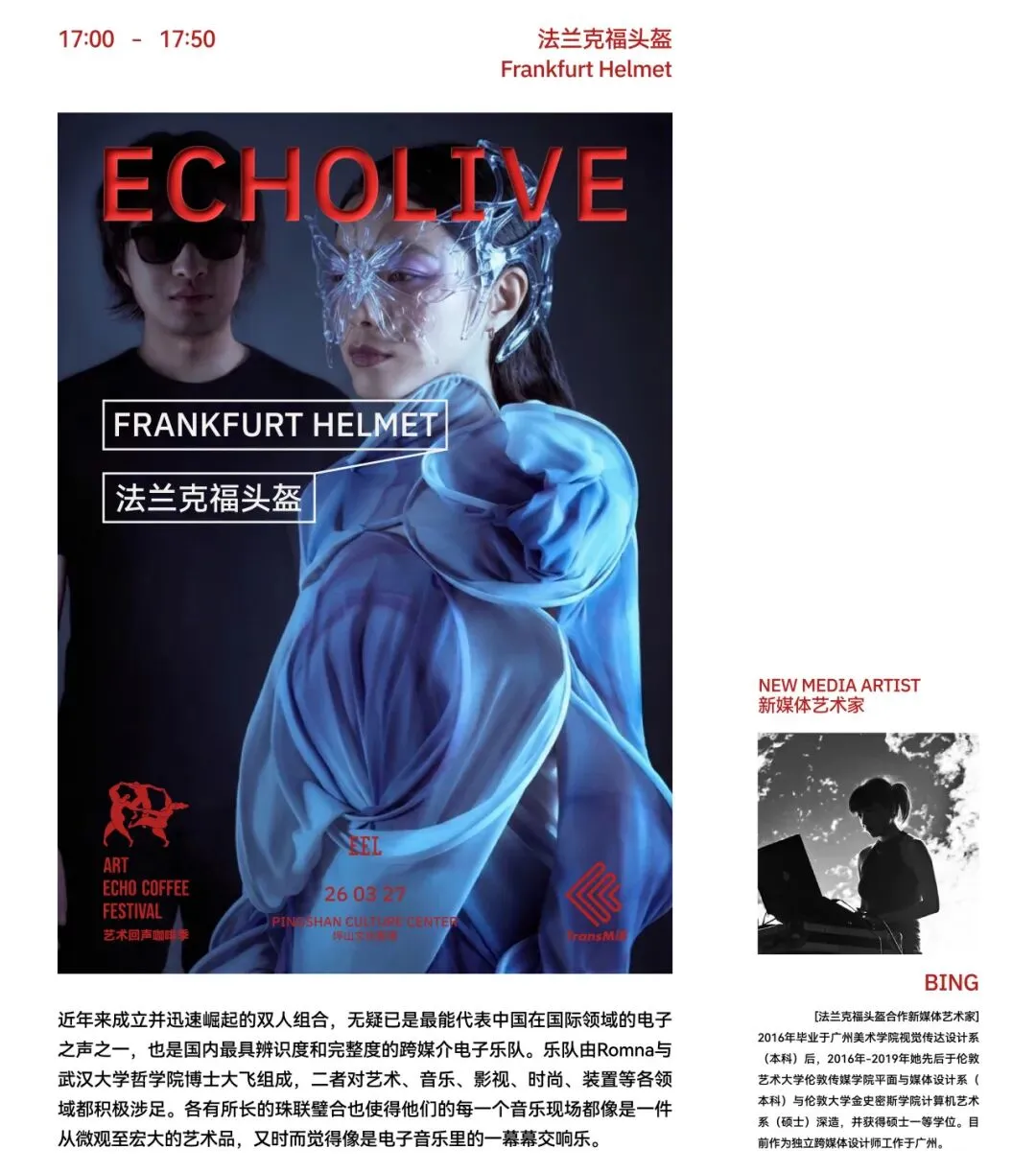 音乐单元首日携手摩登天空旗下先锋音乐厂牌「穿<<<TransMiβ」联合呈现,特邀法兰克福头盔与新媒体艺术家Bing共创首映“马蒂斯风格”新媒体视听作品。