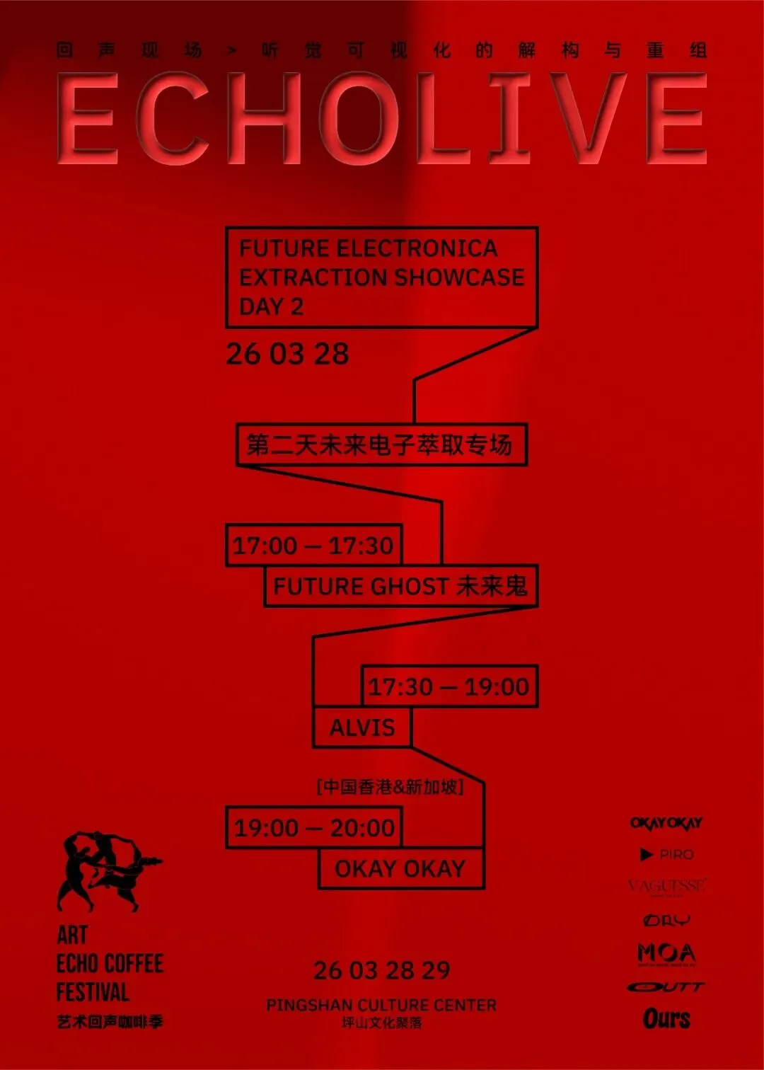 第二天未来电子萃取专场,第三天国际旋律烘焙专场,三天不间断上演氛围电子、实验音乐与环境音景,从傍晚轻松氛围到夜间沉浸式专场,构筑一座流动的“声音建筑”。