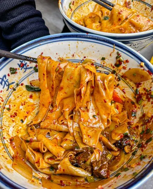 婚宴上十几道菜,结果一大半是面食,这事儿对南方人来说确实意外,因为在深圳或者广东那边,婚宴的标配是海鲜、烧腊、汤煲,面食顶多是最后上个炒面意思一下,但陕西这地方,面食不是配角,是主角,油泼面、biangbiang面、臊子面、饺子、锅盔,这些东西在婚宴上一道道端上来,南方人一开始以为是开胃小吃,吃到后面才发现,这就是正餐,而且每道面都做得认真,油泼面的辣椒油香得能飘出去三米远,臊子面的汤头熬得浓稠,biangbiang面的面条宽得像裤腰带,每一样都是真功夫。